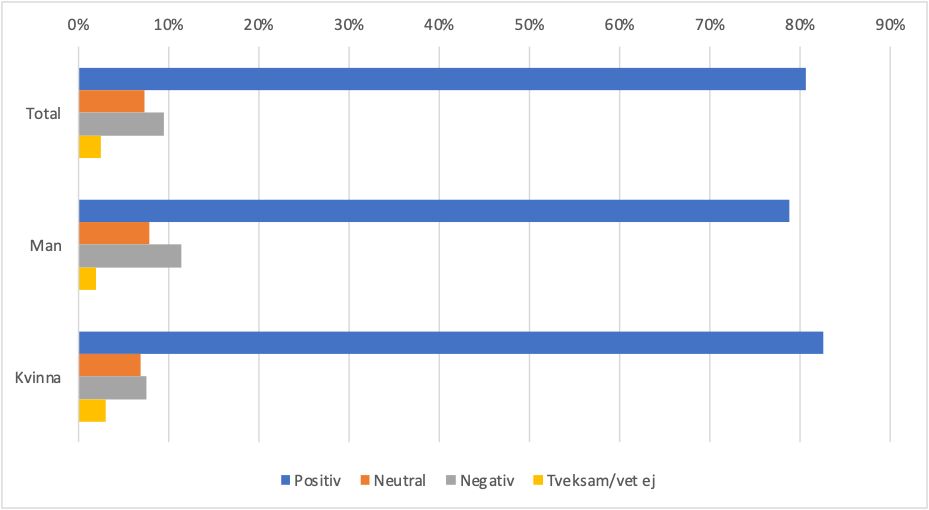 Diagram 2 Inställning till covidpass, uppdelat på kön.