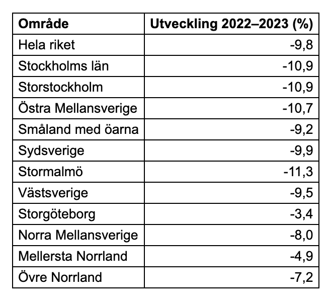 Huspriserna sjönk med 10 procent förra året – stora regionala skillnader