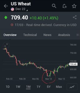 I min senaste krönika som publicerades för två veckor sedan nämndes bland annat min negativt tiltade syn på de breda amerikanska och europeiska indexen. Med facit i hand föll det väl in efter hur allt utspelat sig. Även vetepriset lyftes fram och som tappat ordentligt i höjd men som vi sett planat ut och att en studs låg i korten, och under de senaste två veckorna tror jag vi såg botten sättas för denna gång (se graf nedan till vänster).